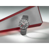 Su forma sencilla, su caja de acero pavonado gris en acabado mate de 40mm de diámetro, el cristal de mineral endurecido y el brazalete a juego con la caja hacen de este reloj un verdadero icono del tiempo.